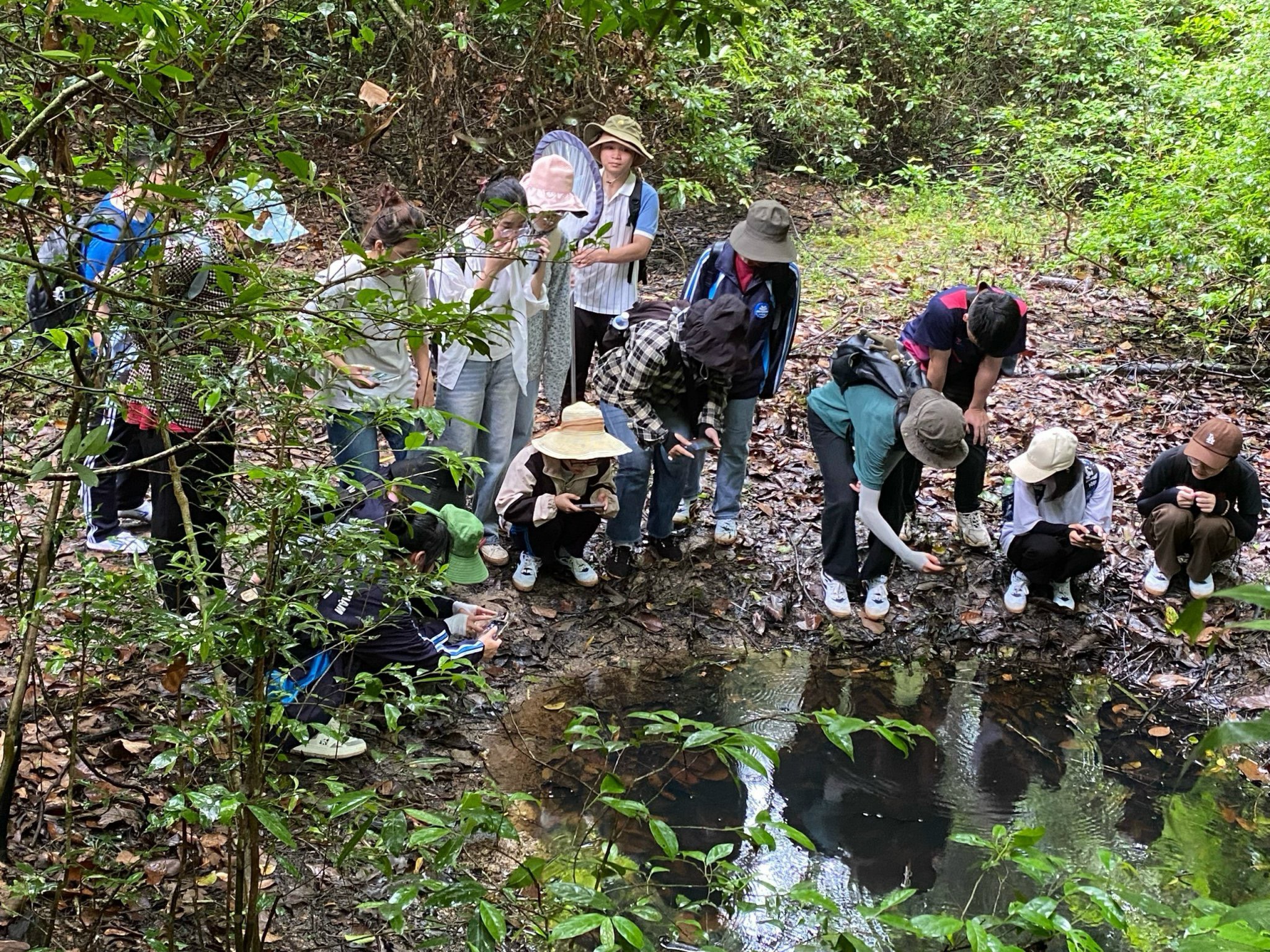 In the first research session, students experienced the route to Eel Pond with a distance of about 3 - 4 km. Along both sides of the road, creatures of many different species, families, and orders were present. The vegetation layers characterize the rocky terrain, which is the home of numerous animals, such as insects, snails, frogs, lizards. At the end of this route, students could see that their treasure of knowledge has opened a new page about animals, plants, and ecology, valuable knowledge that just only their students have the opportunity to accumulate.