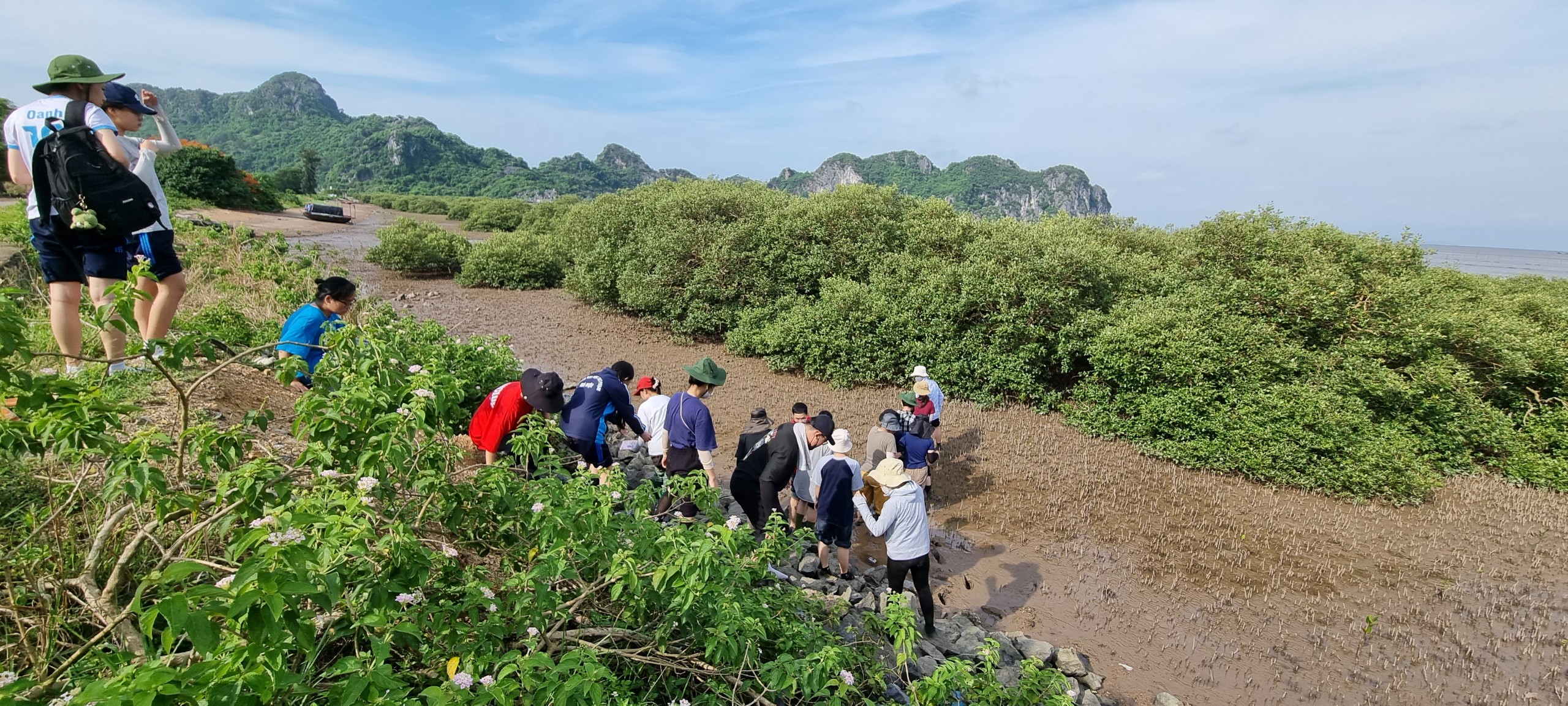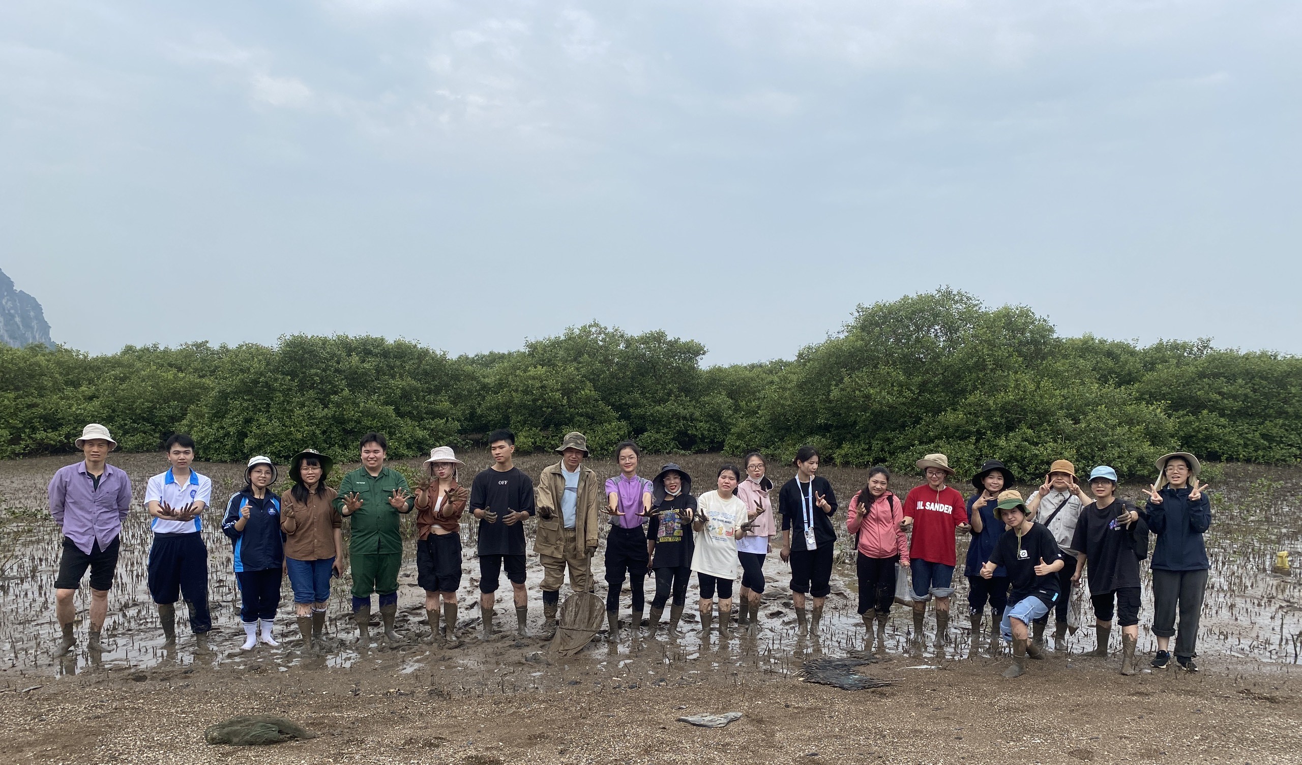 The mangrove forest in Cat Ba is a symbol of the harmony between water and land, where life flourishes and develops in a unique and magical way. Entering the mangrove forest, we were immediately attracted to its wild and mysterious beauty. The roots of the Avicennia tree shoot out of the water like fingers reaching up to the sky, creating a wonderful natural picture, and on top of the dark brown mud, countless brackish water creatures, such as mudskippers, and shrimps, crabs, ... were swimming and welcoming students to observe and study.