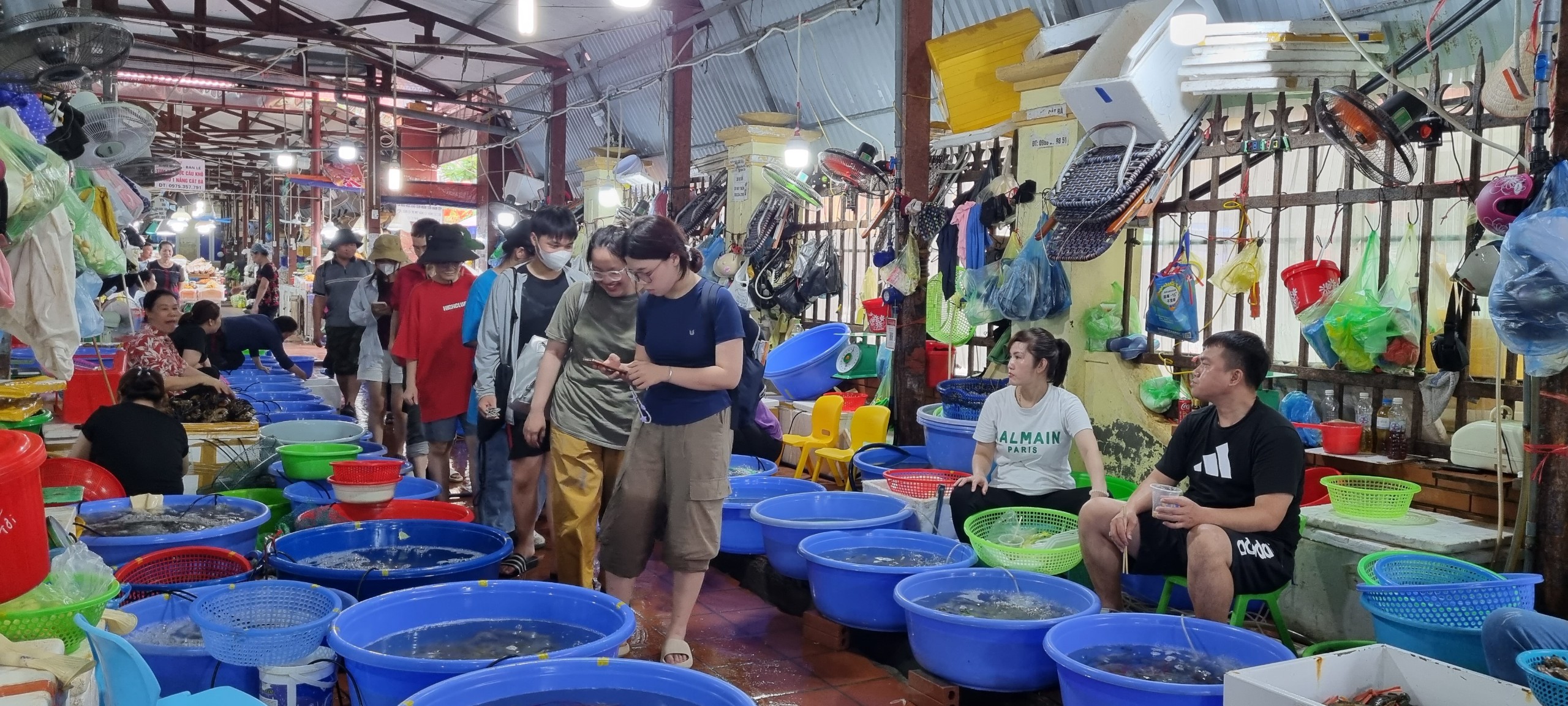 Fig. 6. Observing fish and invertebrate animals in Cat Ba market