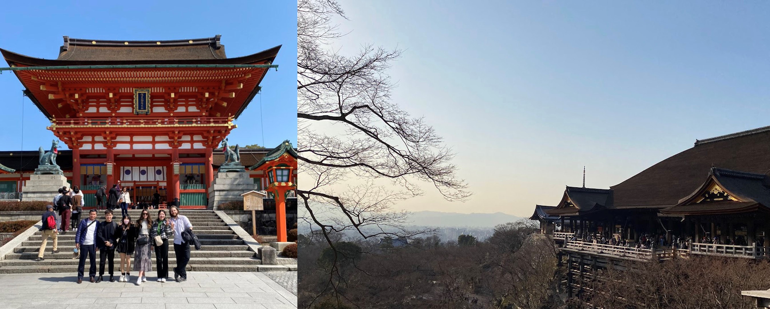 Fig. 2. Visiting Fushimi-Inari Taisha Shrine (the left) and Kiyomizu-dera Temple (the right)