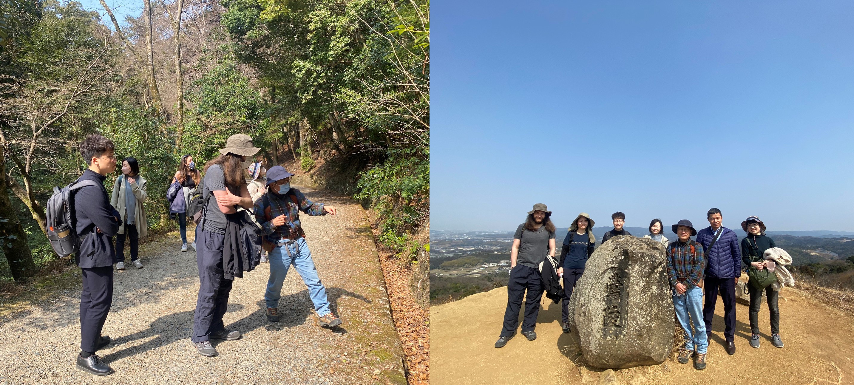 Fig. 4. Prof. Sato was introducing plants in the primary forest (the left) and group photo at the Wakakusayama Summit (the right)