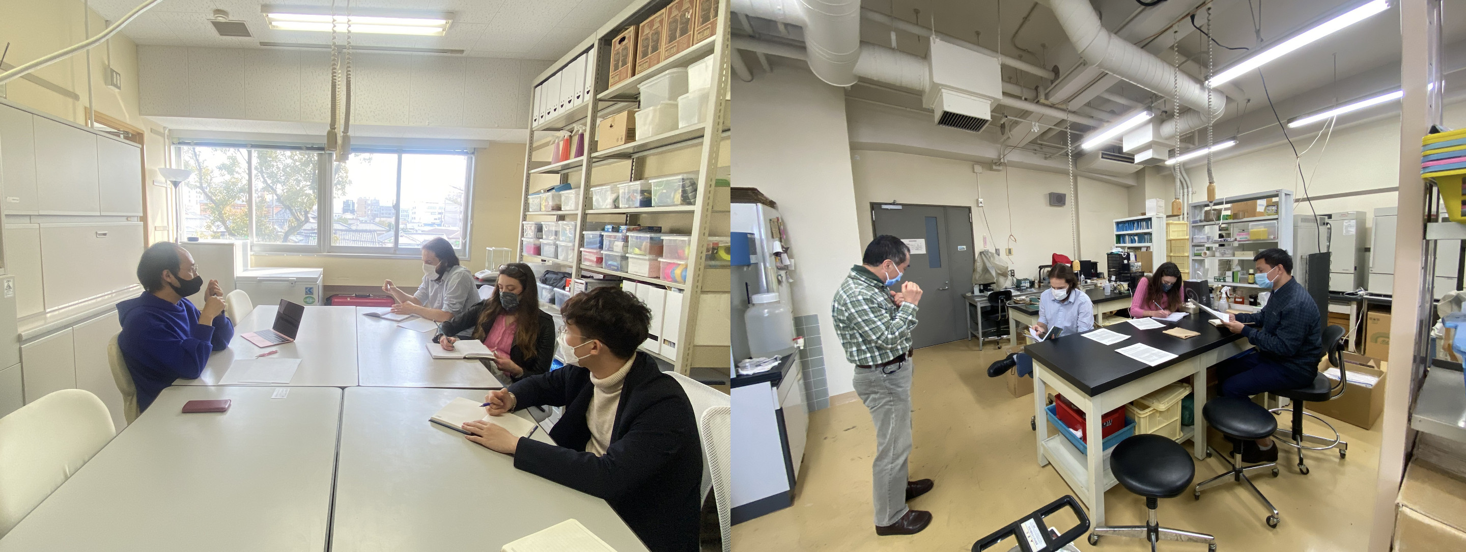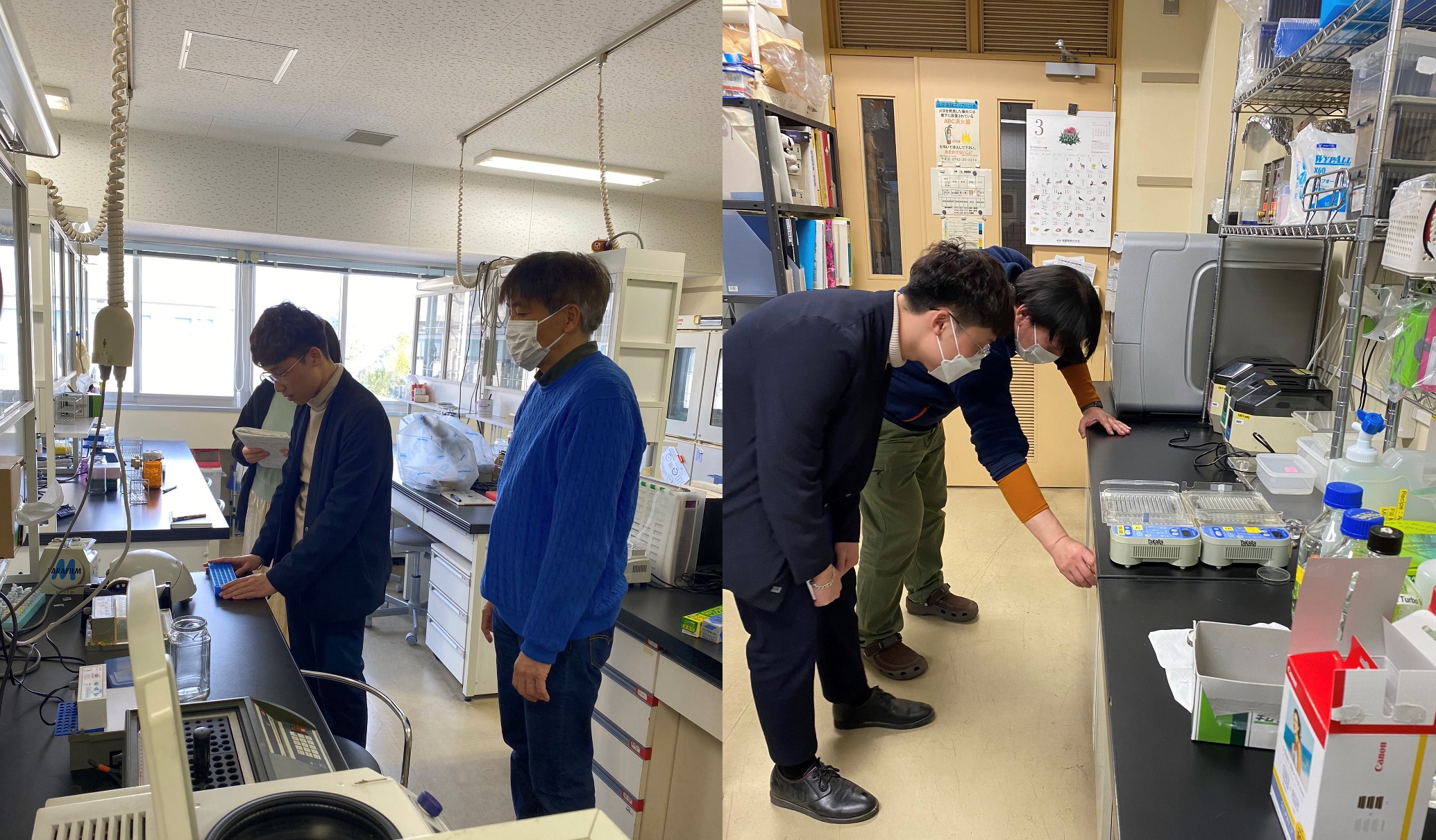 Fig. 8. Student Ha Huy Cong was working in Prof. Kagiwada’s lab (the left) and in Prof. Nishii’s lab (the right)