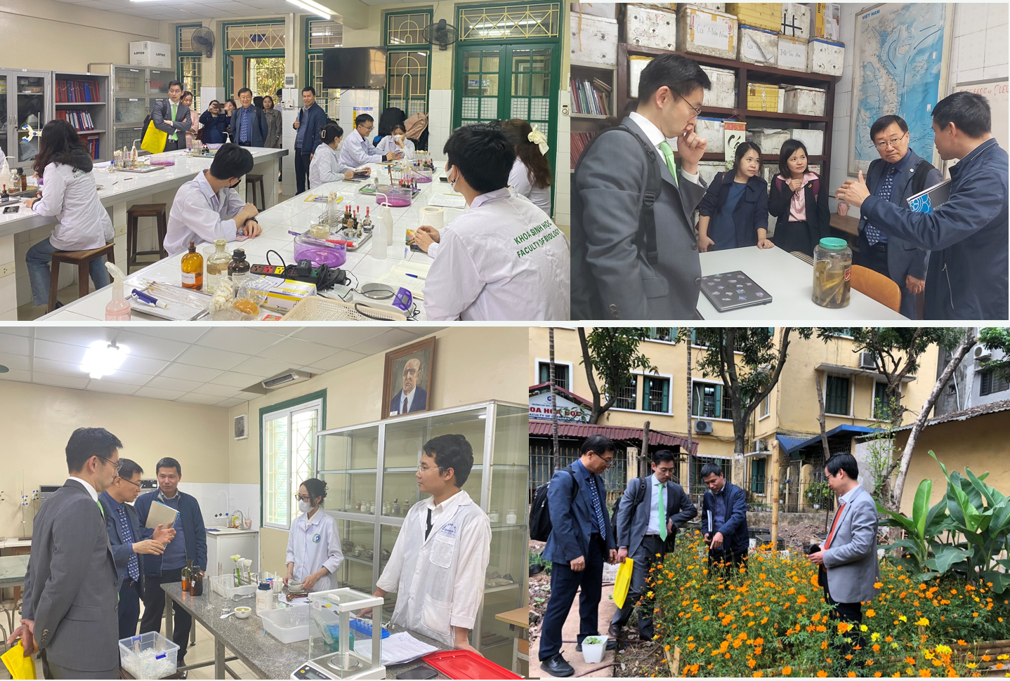 Fig. 5. Prof. YANG and Assoc.Prof. KIM visited the facilities, and observed teaching and research activities at the Falcuty of Biology, HNUE