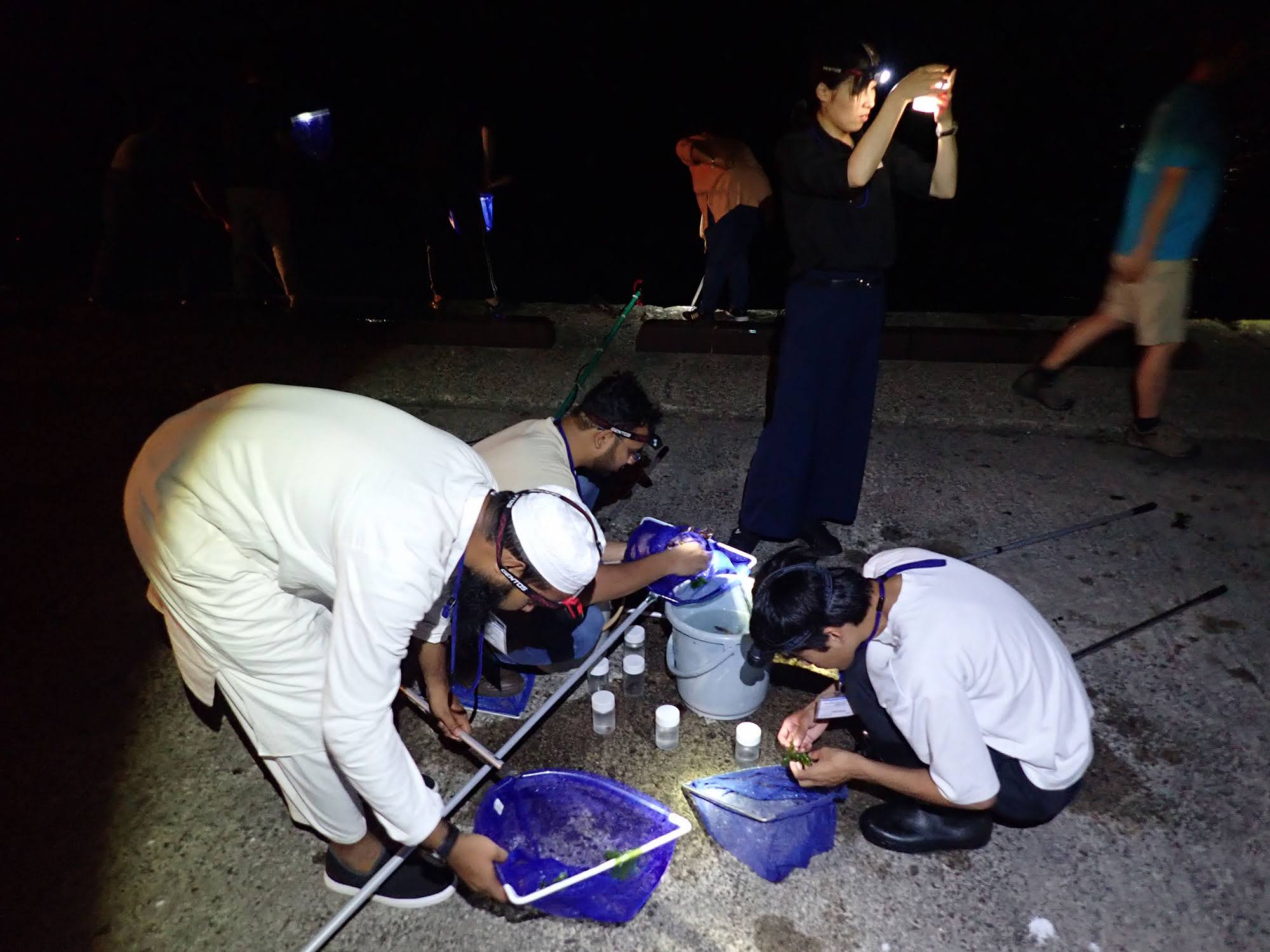 On the third day, attendees were instructed to collect plankton and benthic organisms with the station's survey vessel and then observed them with a microscope in the laboratory. In the afternoon, students attended an intriguing lecture entitled “Evaluation of Molting and Growth Performance of Shrimp/Prawn in Coastal Aquaculture” (Prof. Md. Nurul Absar Khan & Dr. Md. Mahiuddin Zahangir, CVASU). After the lecture, students had a chance to take part in a gold mine tour and the historical heritage sites. This was a really exciting activity for everyone. In the evening, people enjoyed watching sea fireflies (Umi – Hotaru, Vargula hilgendorfii) glowing in the dark.