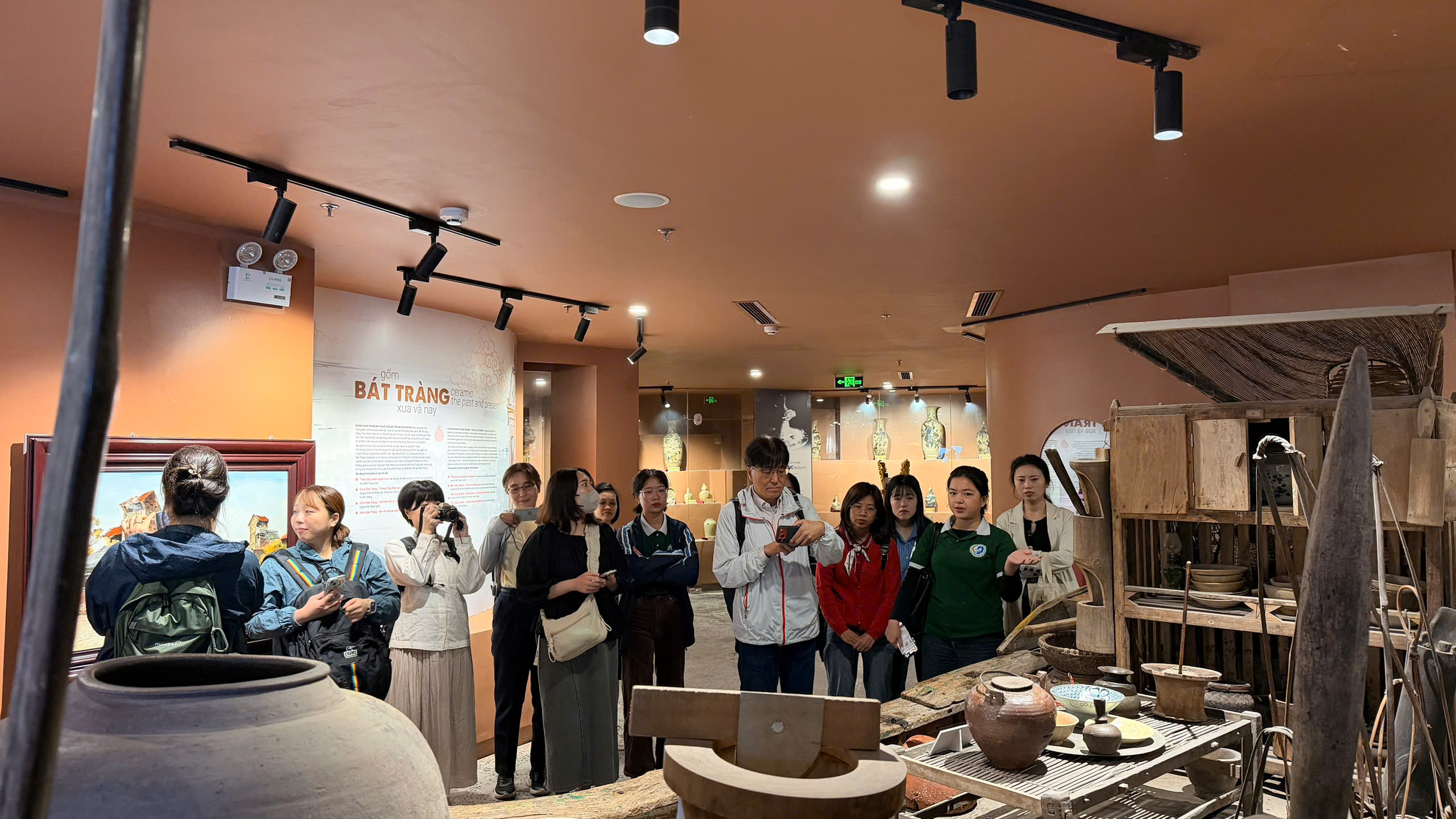 On December 6, 2025, following the success of THE INTERNATIONAL JOINT SYMPOSIUM PROGRAM, professors and presenters from Nara Women’s University (Japan) and Gyeongsang National University (Korea) took part in a cultural excursion to the Bát Tràng Ceramic Museum and the traditional Bát Tràng craft village.