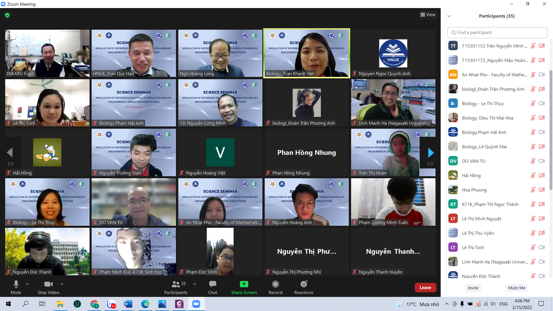 This seminar was organized by a collaboration between the Faculty of Mathematics - Informatics and the Faculty of Biology, Hanoi National University of Education.