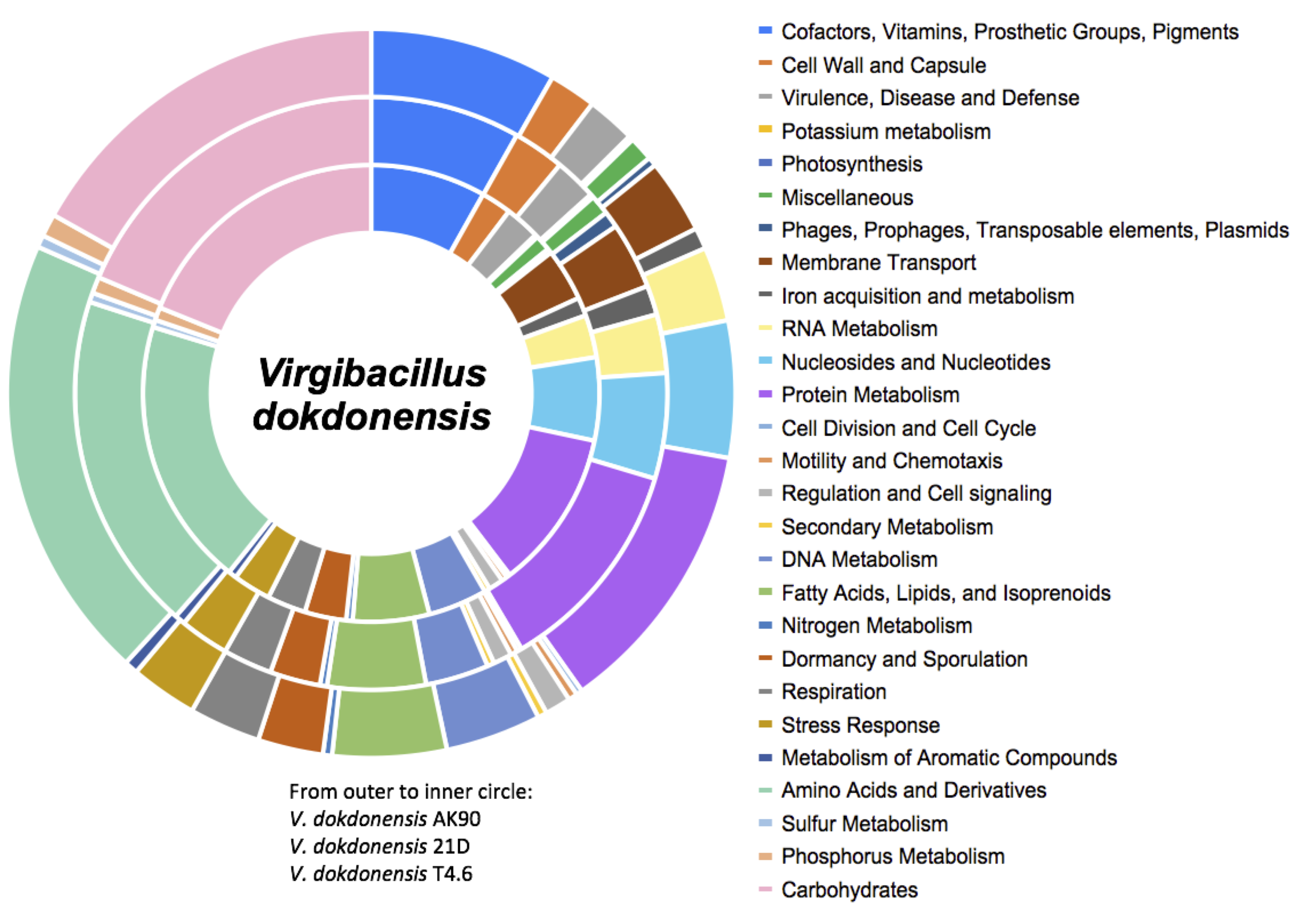 Figure 2. Comparison of subsystem category distribution of V. dokdonensis T4.6 and other V. dokdonensis strains