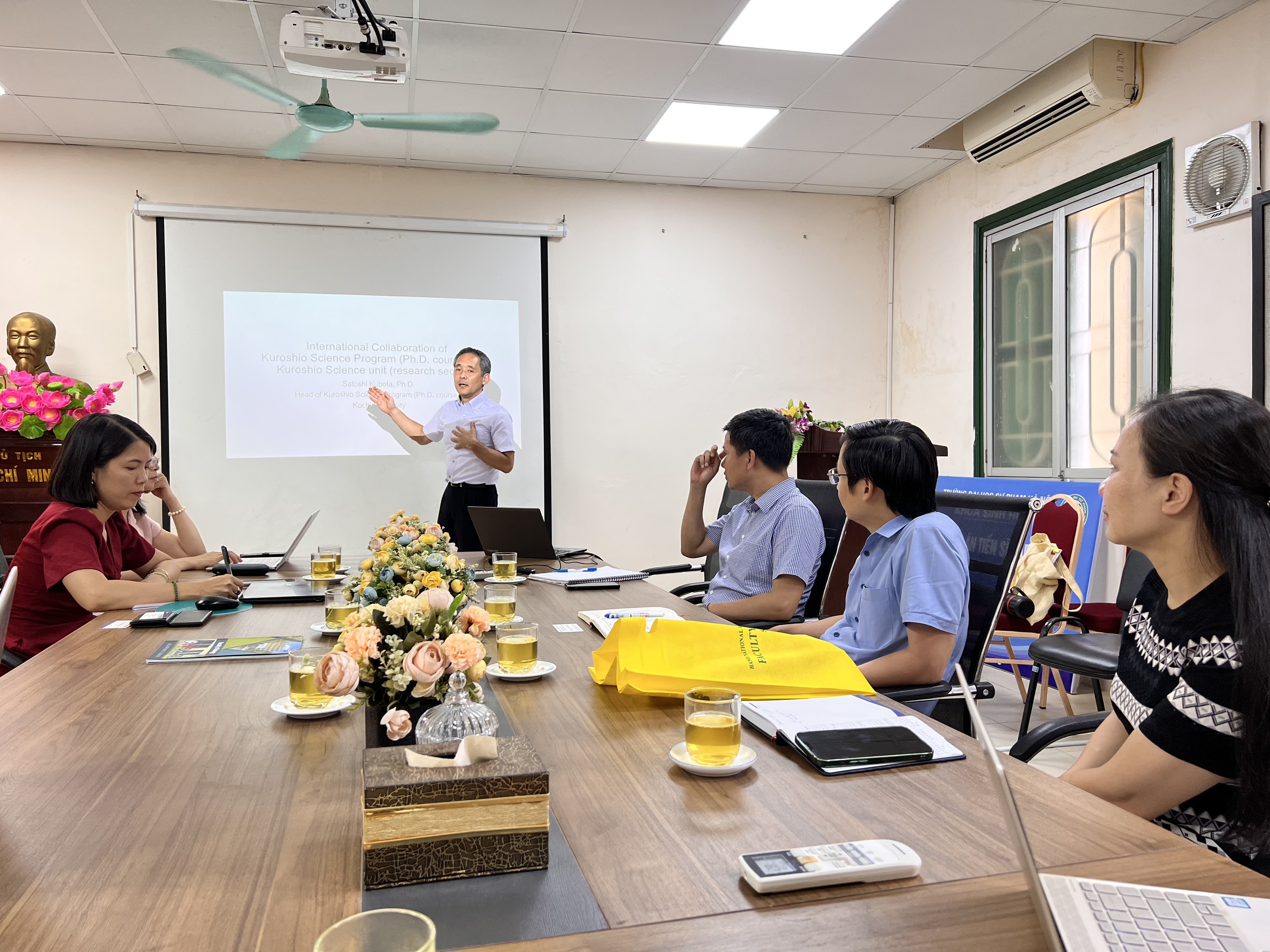 At the meeting, Assoc. Prof. Dr. Nguyen Lan Hung Son, the Dean of the Faculty of Biology was very grad to welcome and discuss with Prof. Satoshi Kubota about the academic activities of the two universities, as well as the premise for collaborations. Assoc. Prof. Dr. Nguyen Lan Hung Son briefly introduced information about the Faculty of Biology, faculty members, as well as training fields and potential collaboration in research at the Faculty of Biology.