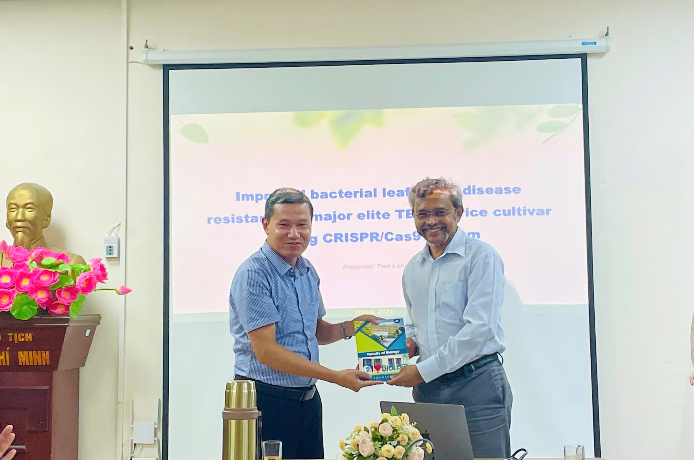 Report of Dr. Tran Lan Dai “Improved bacterial leaf blight disease resistance in major elite TBR225 rice cultivar using CRISPR/Cas9 system” was the newly published. With the results of applying CRISPR/Cas9 system, the research has reported an increase in resistance to bacterial leaf blight disease in rice. The discussion revolves around whether the use of CRISPR/Cas9 system for food crops was acceptable in Vietnam or not.